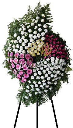 The wreath is composed from Gerberas and Local Roses. We have used over 130 flowers and various decorative plants to create this wreath. The height of the wreath reaches to 195 cm and the width reaches to 90 cm.