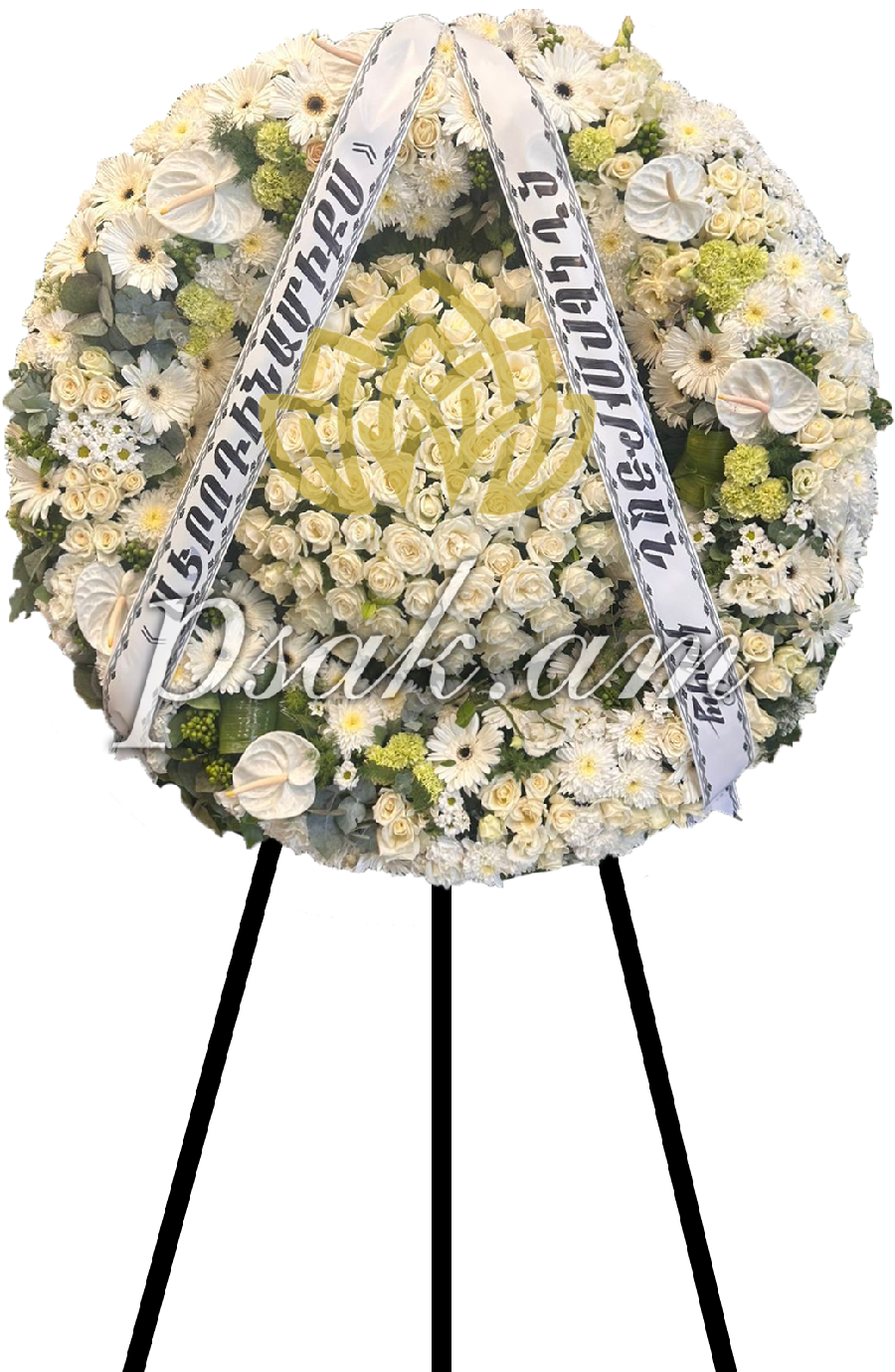 Ծաղկեպսակը պատրաստված է դեղին ծաղիկներից, օգտագործվել է 60 Հերբերա (sunlight և submarine տեսակների), 90 Վարդ (Goldstrik տեղկի), 30 Զեմբելաներից և լրացված է դեղին ֆրեզիաներով։